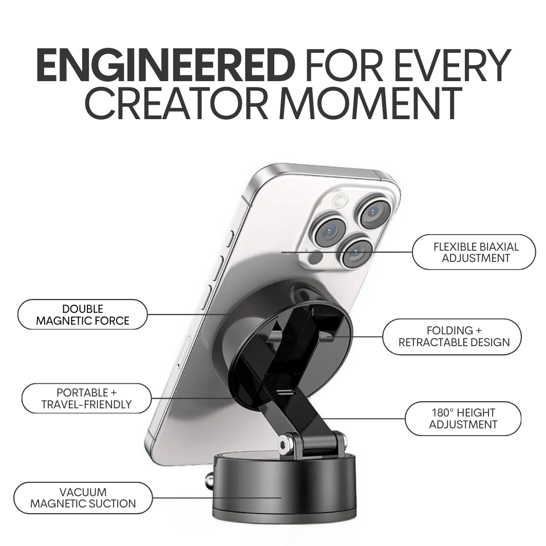 Say goodbye to unstable setups and hello to smoother content creation. Whether you're filming TikToks in your room, recording recipes in the kitchen, or capturing time-lapse art outside, the StudioGlo Content MagMount adapts to you. Its strong magnetic suction and versatile design let you mount your phone or camera on mirrors, dashboards, desks, and more—wherever the moment takes you.