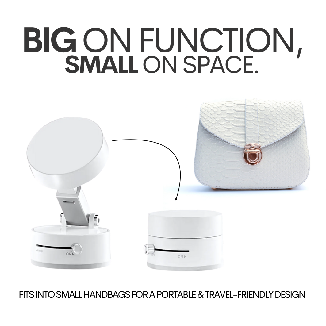 Lightweight, foldable, and compact enough to fit in your purse or backpack—the StudioGlo Content MagMount is the ultimate tool for content creation on the go. Whether you're traveling, shooting remotely, or just creating from room to room, it’s designed to keep up with your lifestyle.
