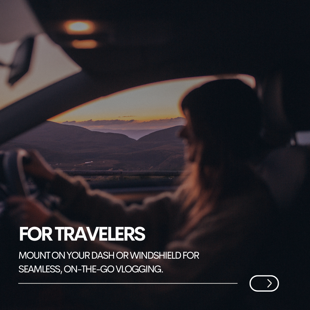 • Mount the MagMount on your car dashboard or windshield for easy vlogging on the go.